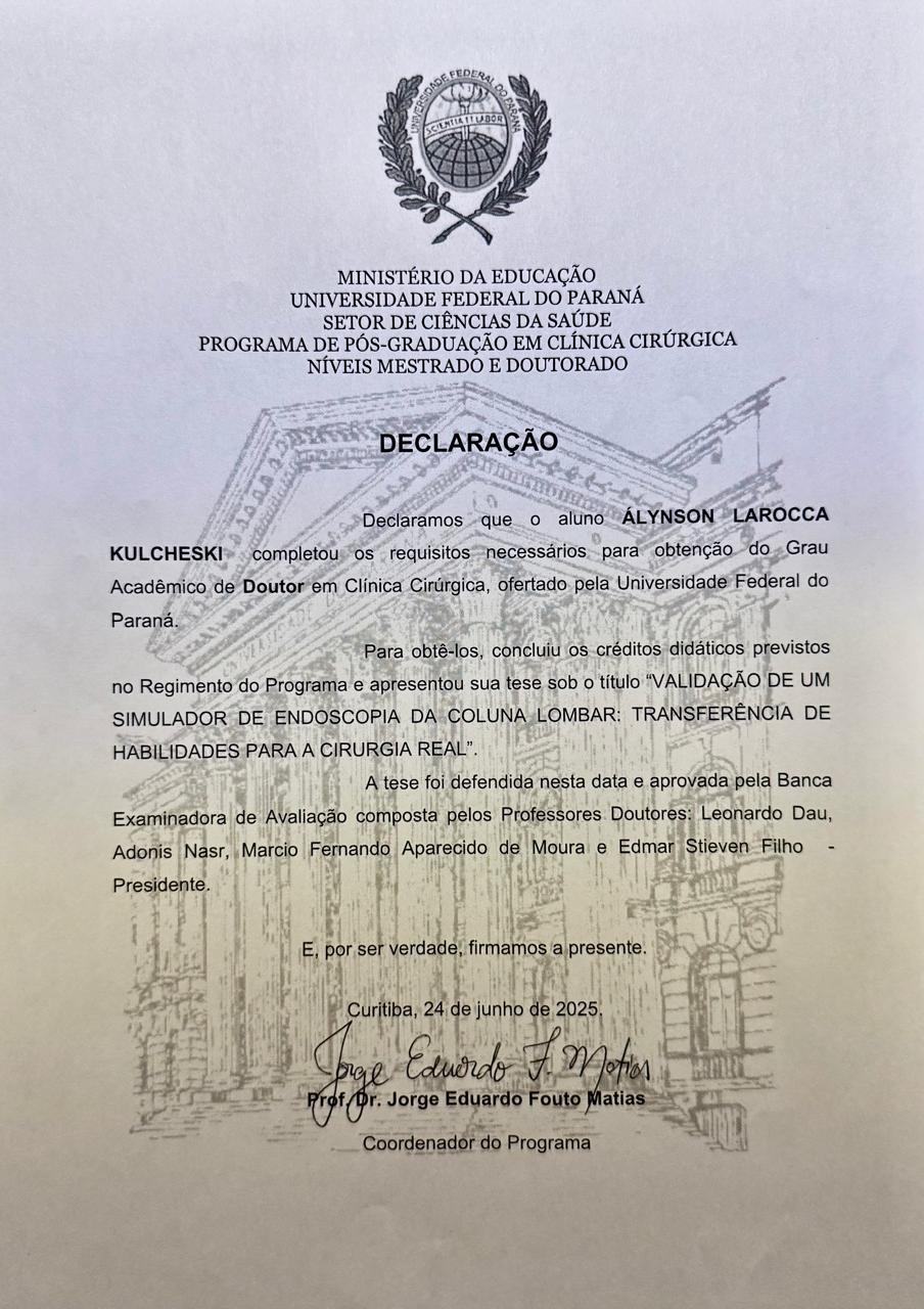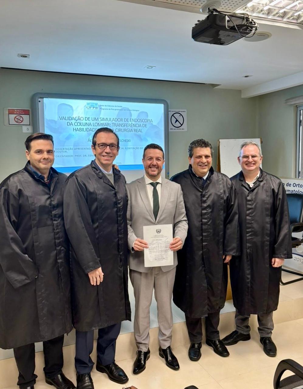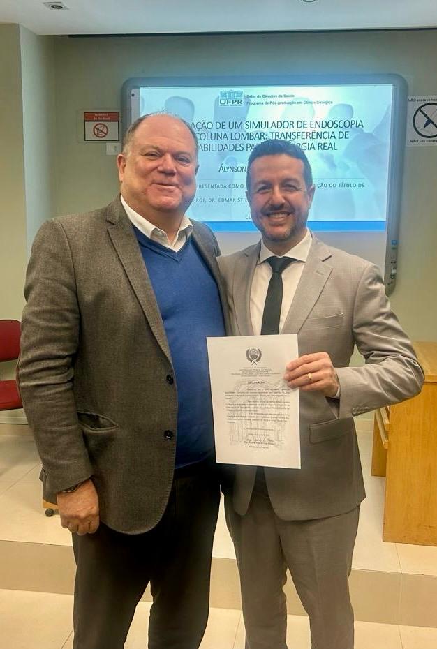 Minha tese é a validação de um simulador de endoscopia da coluna, em que conseguimos demonstrar, de forma inédita, a transferência de habilidades adquiridas no simulador para uma cirurgia real. Um trabalho inovador e pioneiro na literatura médica mundial.